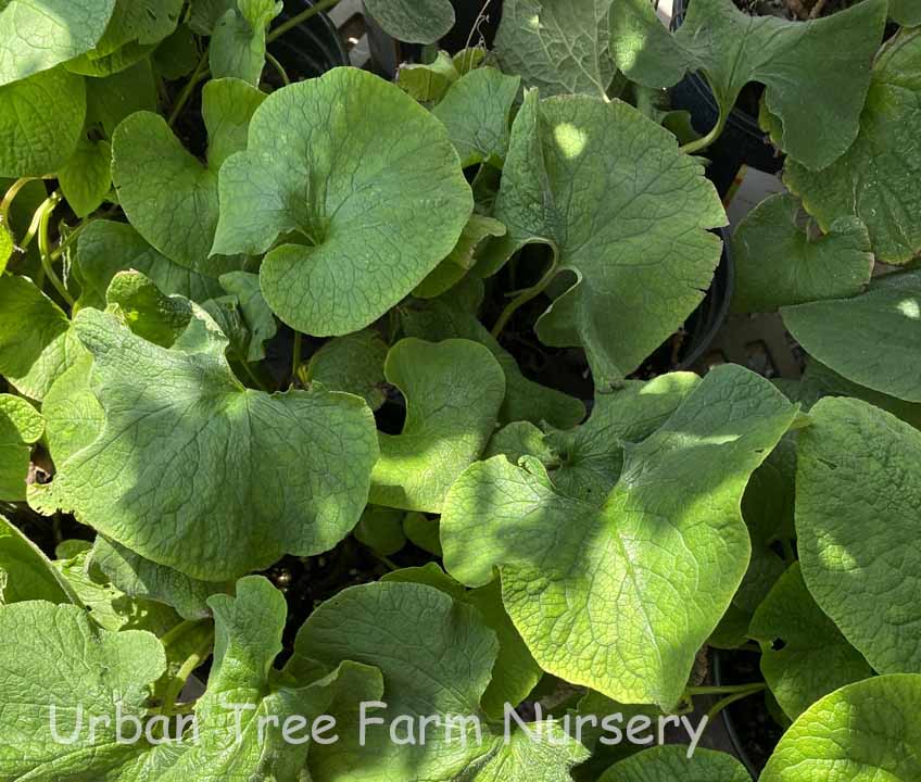 Deciduous perennial. Large heart-shaped, deep green leaves form compact clump, bearing sprays of bright blue “forget-me-not” flowers in spring. Moderate water needs once established. Adaptable to various soil conditions. Hardy to 0°F.