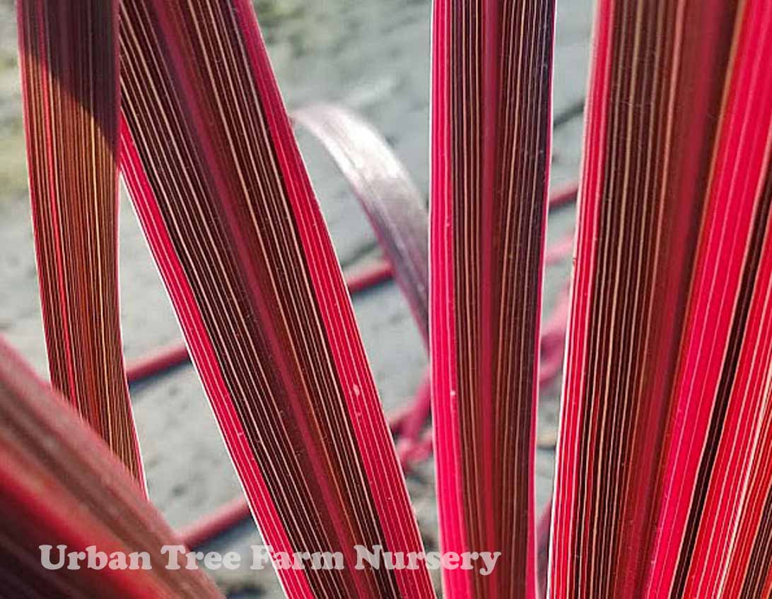 Evergreen tree with long upright pointed leaves clumping from the base. Features elegant, broad, bronze and purple colored leaves with bright pink streaks. It generates multiple shoots to form a cluster of brightly colored leaves. Low water needs once established.