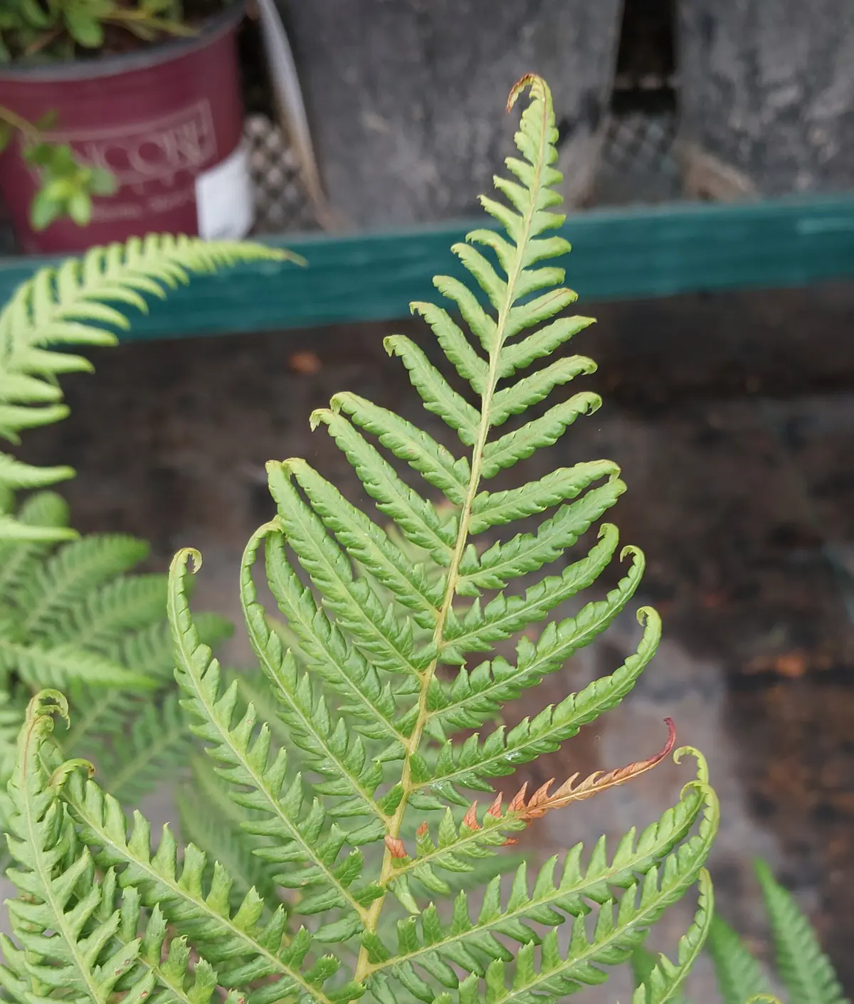 Deciduous tree fern. Moderate growth rate. Vase shaped. Long, bright green, lacy fern fronds emerge from a central growing point. Dark brown trunk with fibrous outer texture. Deer resistant. Regular water needs once established.