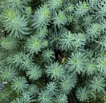 Evergreen perennial. Mound-like habit. Fleshy vibrant green leaves are held somewhat erect on this tough relative to the Christmas Poinsettia. A truly dramatic addition to the garden. Interesting cup-shaped lime green “flowers” bloom in late spring into summer. Deer resistant. Moderate to regular water needs in well-drained soil once established. Hardy to 0°F.
