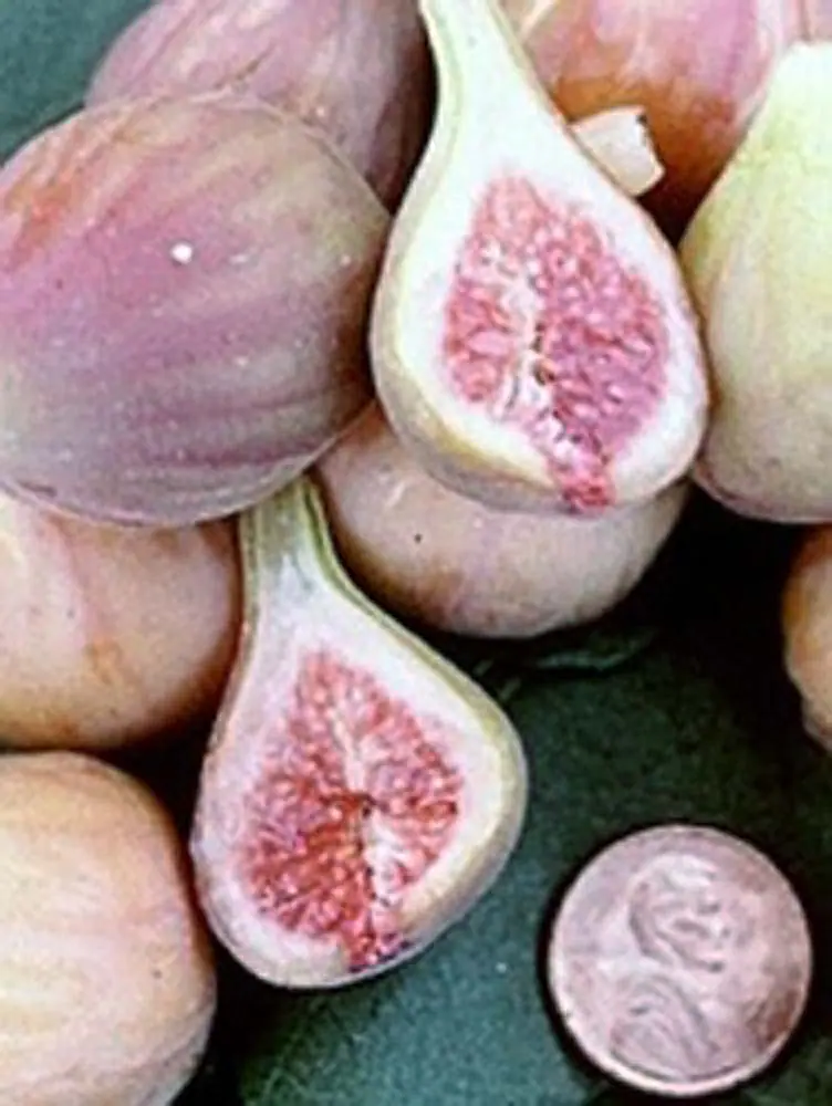 Deciduous tree. Also known as Celeste fig. Purplish brown skin with pink flesh. Widely adapted to various climates. This variety rarely produces the early “Brepa” crop, but the later summer to early fall crop is very productive. Prune to any size or shape. Regular water needs once established.