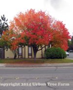 Deciduous tree. Slow growing with rounded canopy. Medium-sized oblong bright-green leaves color brilliantly in fall: yellow-orange to orange-red to red. Female trees have bright bluish-green berries. Drought tolerant once established.