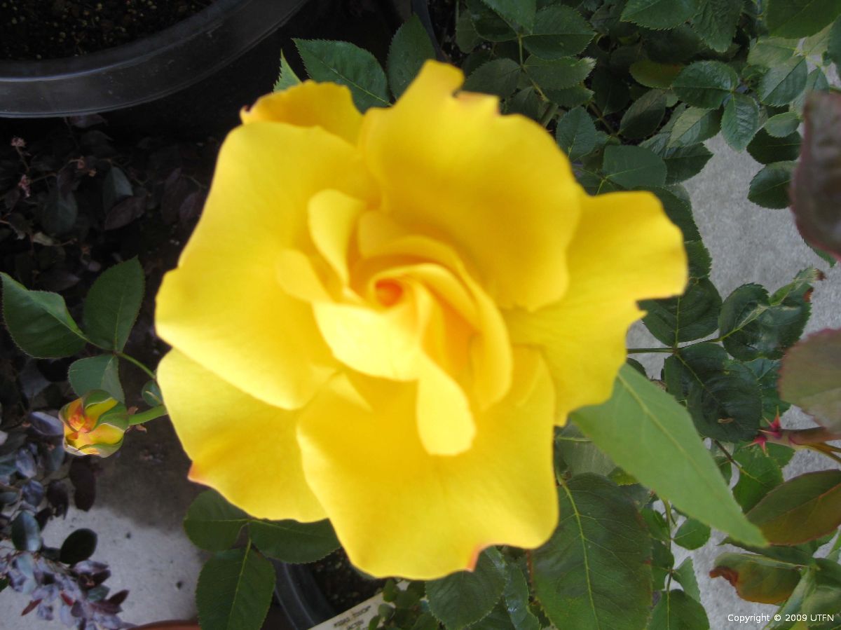 Deciduous shrub. Can be pruned into a small tree rose. Usually kept as a 3 foot bush. Very bright yellow color. Large flowers are resilient to all types of weather and hold the neon yellow color well. Glossy dark green foliage. Best size and petalage when cool. Moderate water needs in well-drained soil once established.